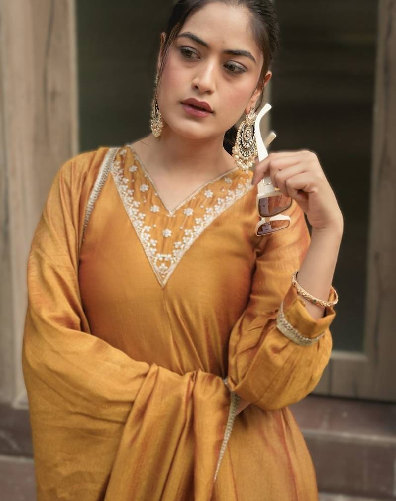 | • | Kameez | : | Color- Mustard / Fabric- Silk Blend |