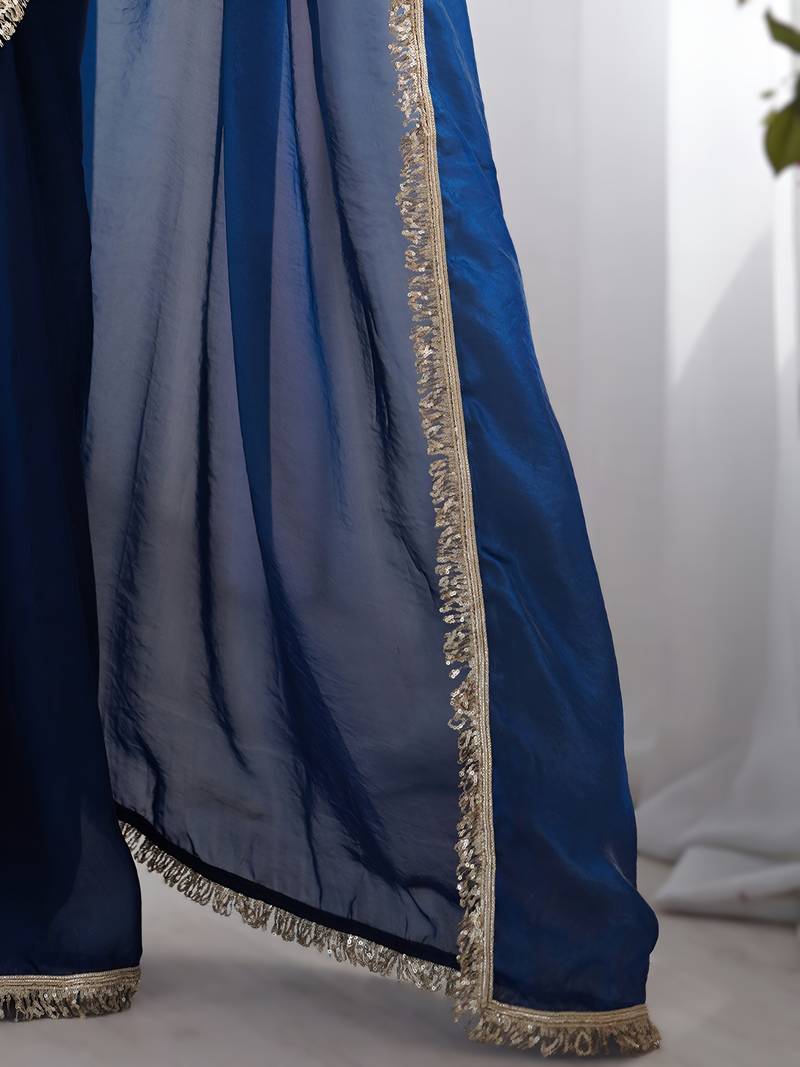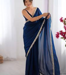 Navy blue soft space silk saree with sequin zalar lace border & matching blouse
