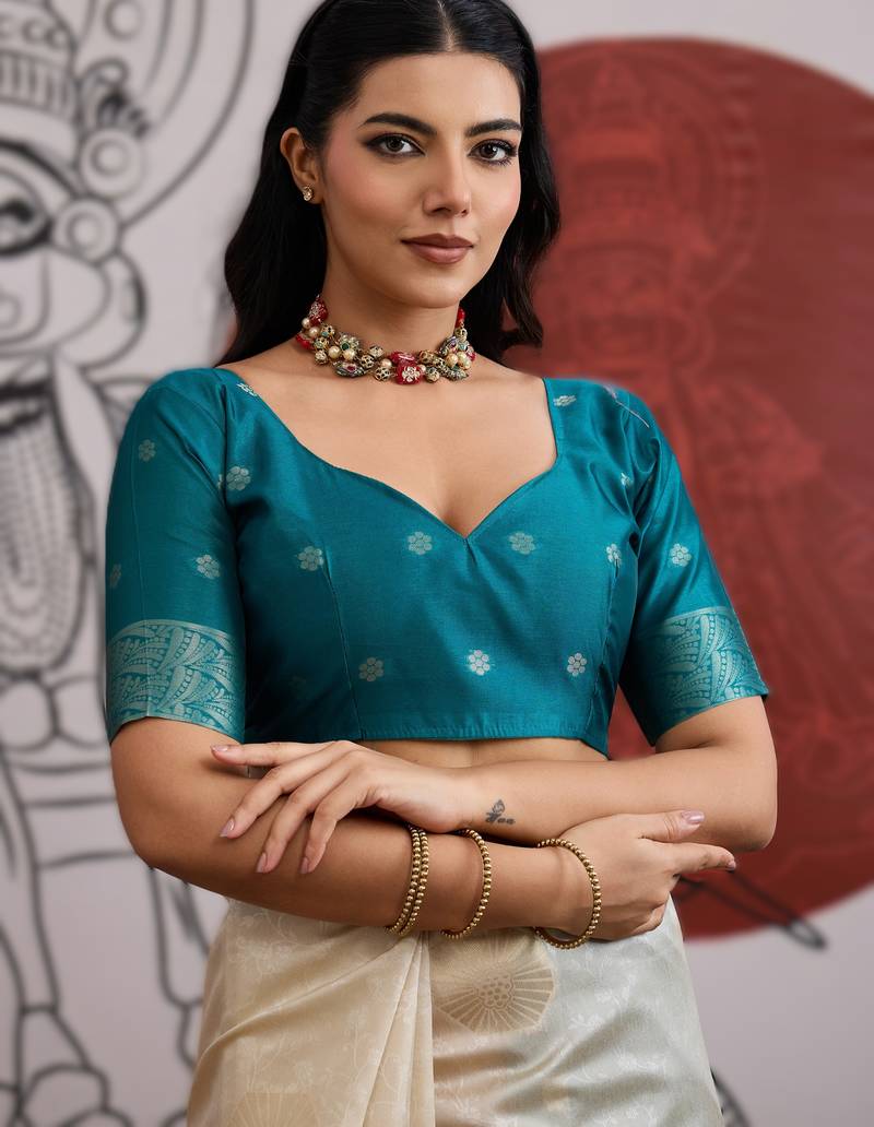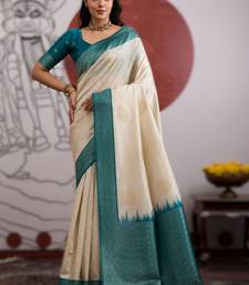 Off white handloom weaving paper silk blend saree with paper silk blend blouse casual & festive wear