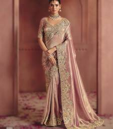 Onion pink classic pure smooth zari silk saree with rich embroidery and sequins