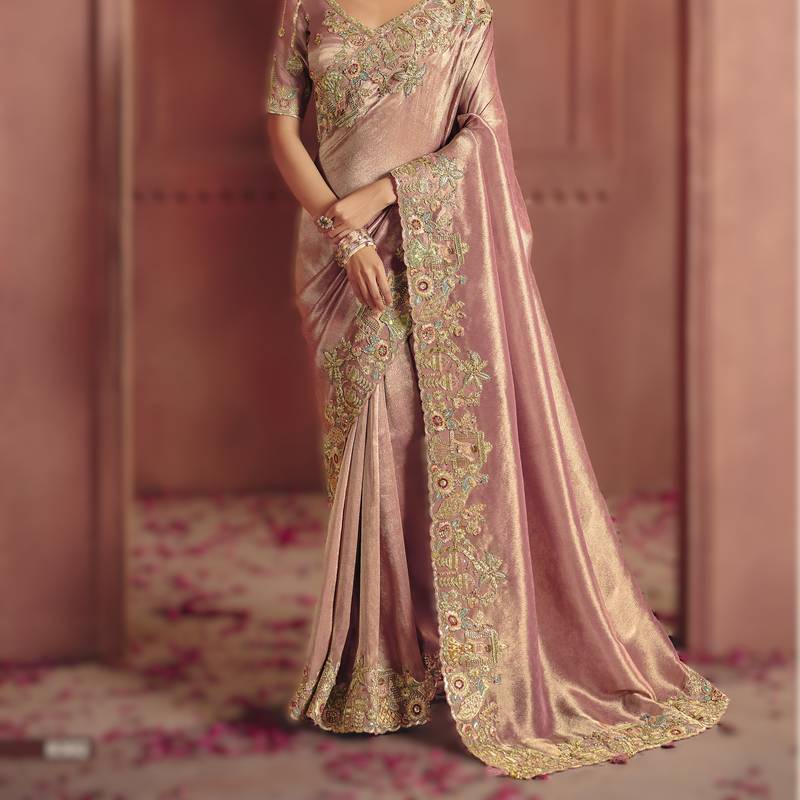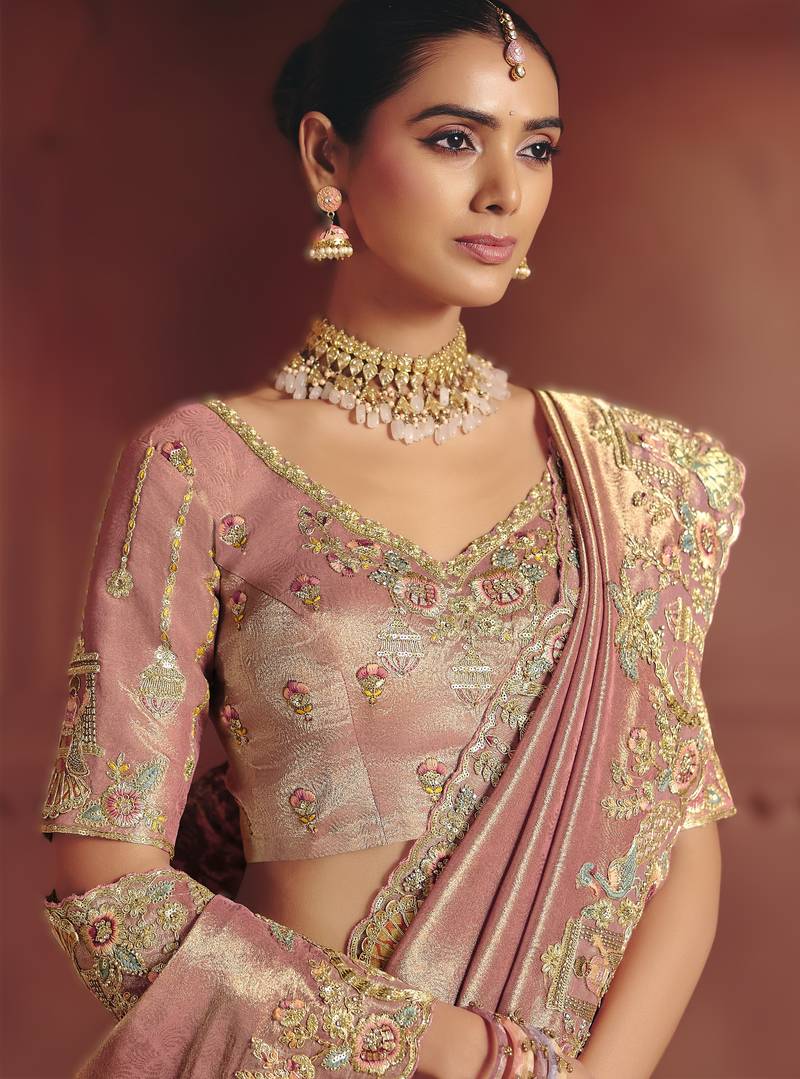 | Product Name | Onion Pink Classic Pure Smooth Zari Silk Saree With Rich Embroidery And Sequins | |