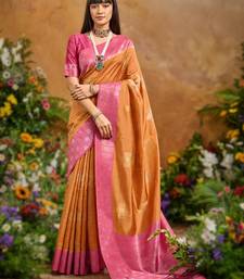 Orange handloom weaving paper silk saree with matching paper silk blouse