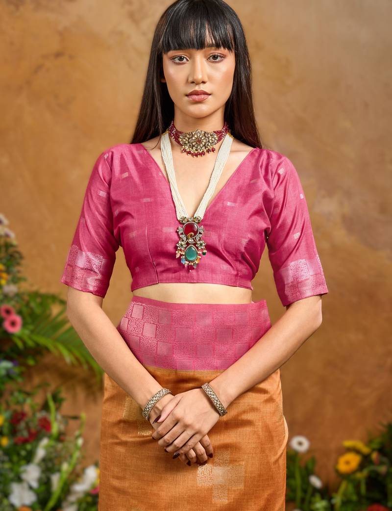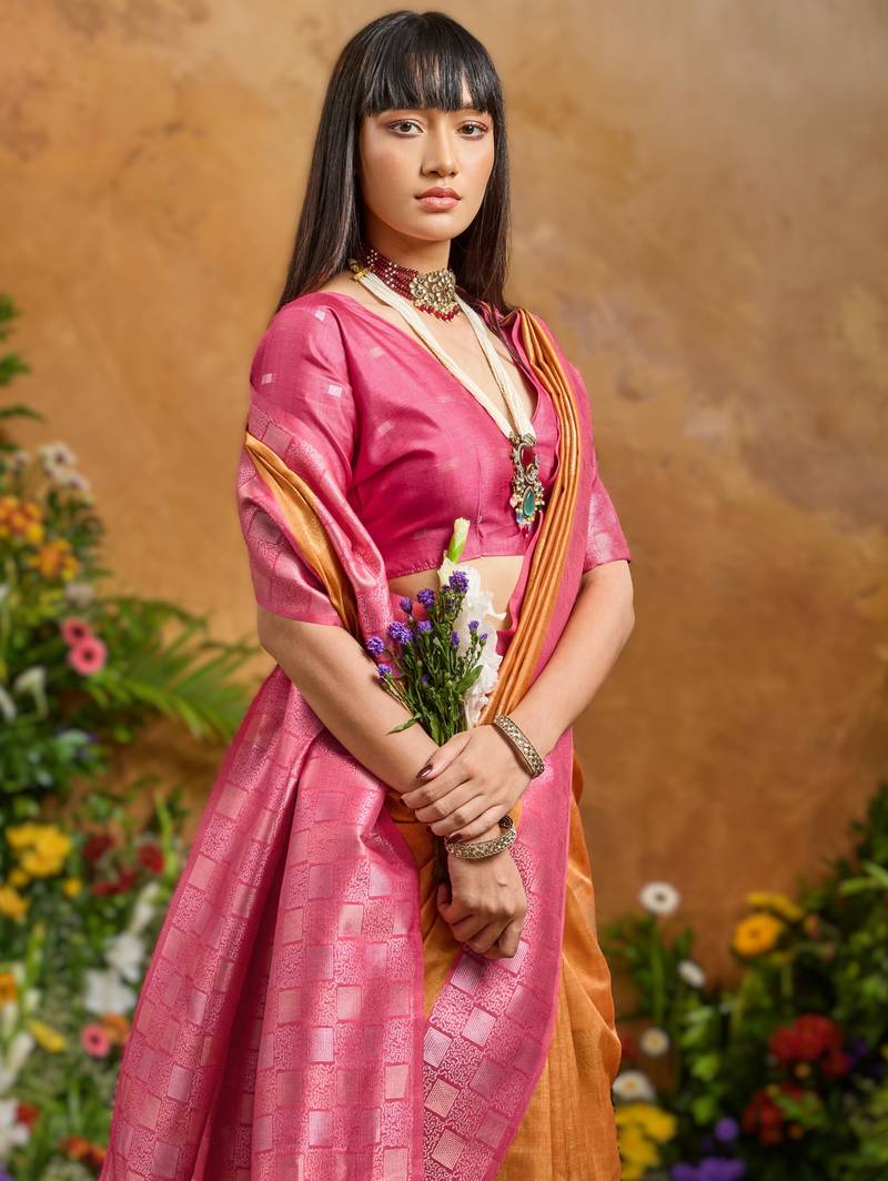 | Product Name | Orange Handloom Weaving Paper Silk Saree With Matching Paper Silk Blouse | |