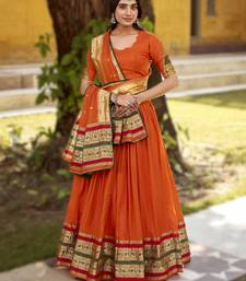 Orange paithani style pure chanderi zari weaving lehenga choli with dupatta ready made (32 to 42)