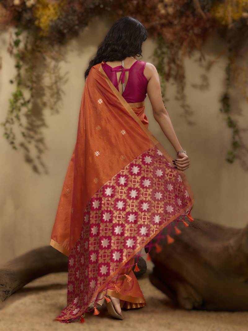 | • | Saree | : | Color- Orange / Fabric- Tussar Silk |