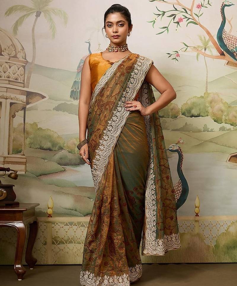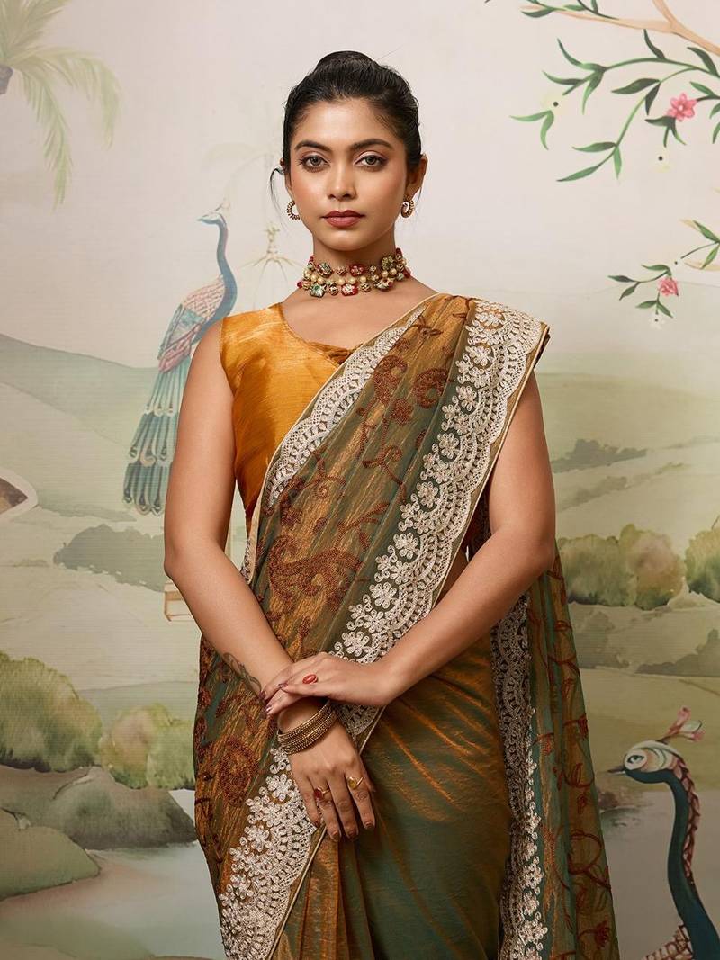 Party wear fendy soft net saree with chikankari embroidery and piping border wedding festive wear