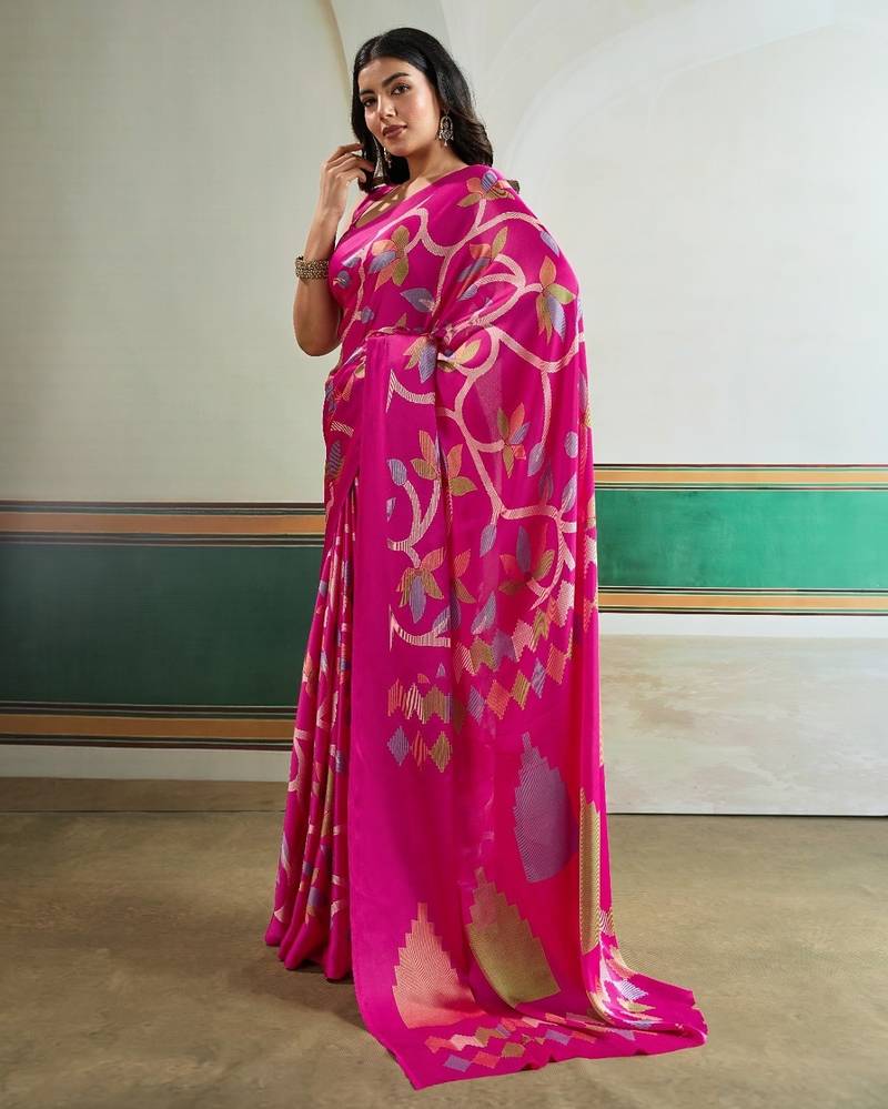 | Product Name | Pink Color Soft Modal Satin Ajrakh Print Saree – Timeless Ethnic Collection | |