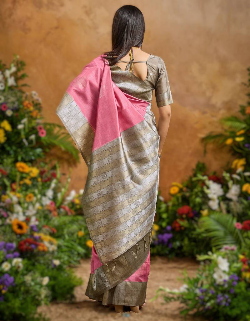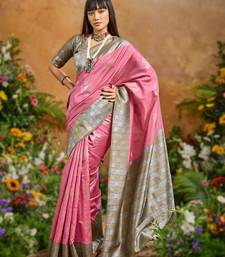Pink handloom weaving paper silk saree with matching paper silk blouse