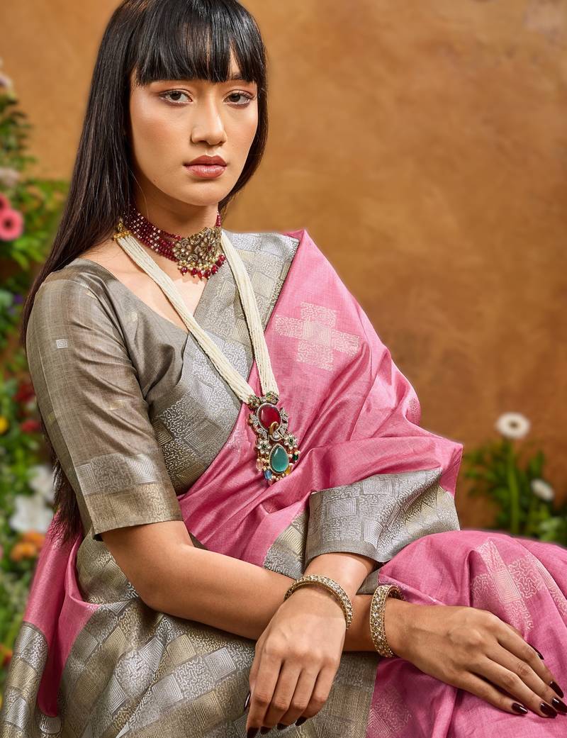 | Product Name | Pink Handloom Weaving Paper Silk Saree With Matching Paper Silk Blouse | |