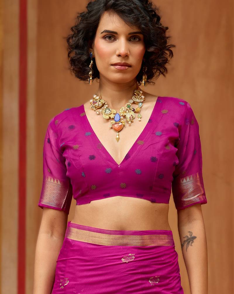 | Product Name | Pink Munga Cotton Handloom Saree With Organza Woven Pallu Party & Uniform Wear | |