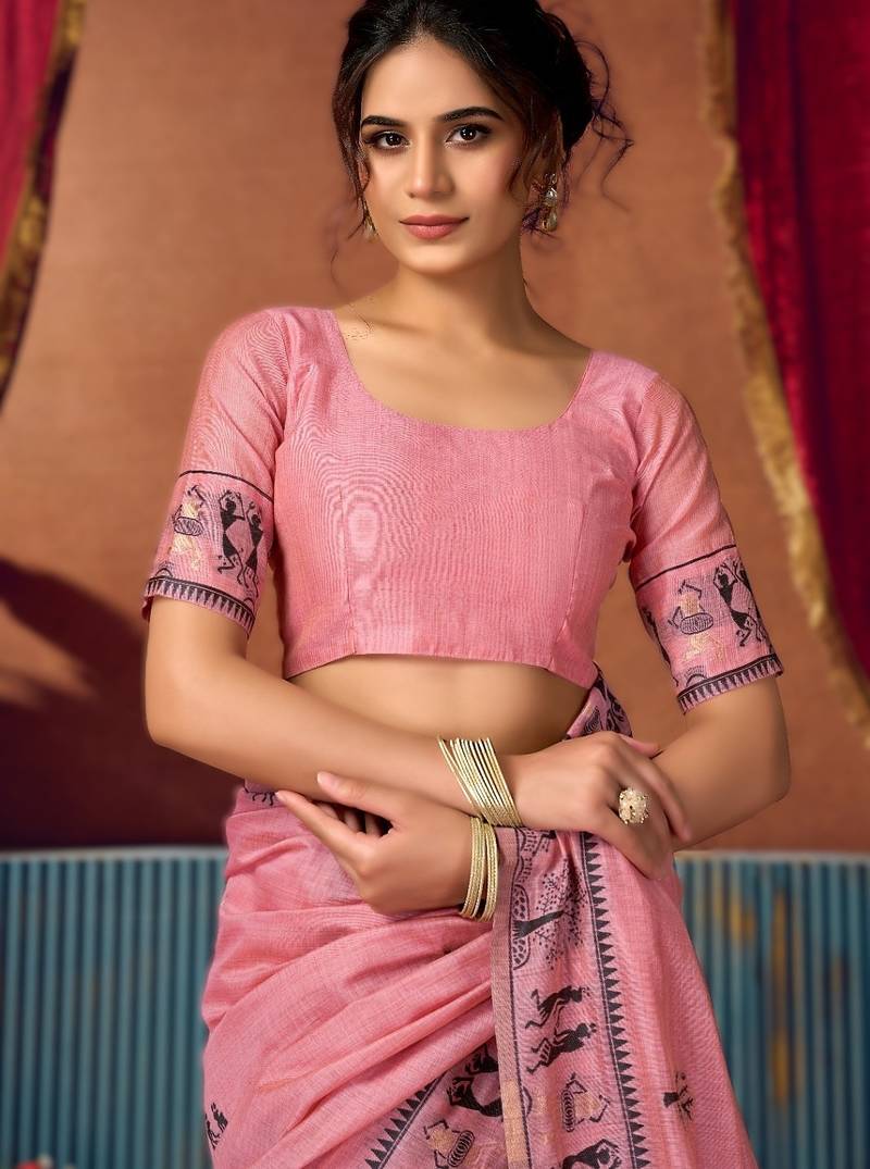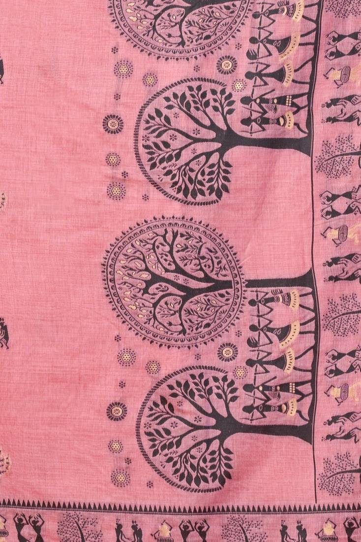 | Product Name | Pink New Catalogue Launch By Gobuni – Modal Warli Work Saree With Pumpum | |