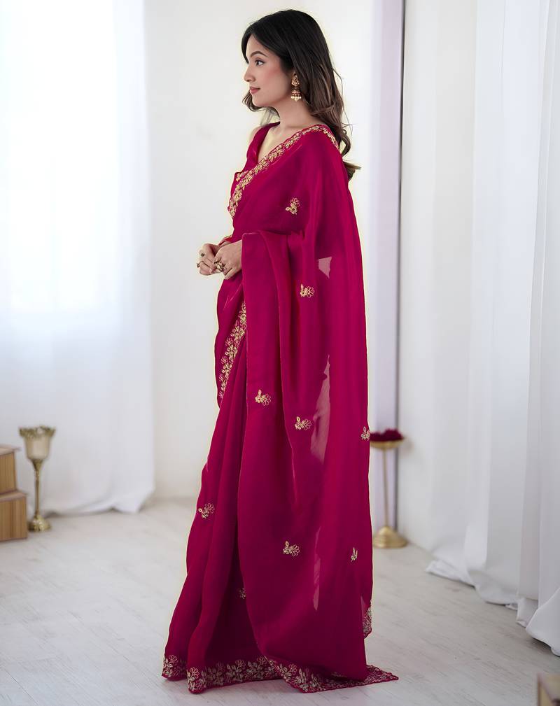 Pink party wear fandy satin silk saree with embroidery work in 7 colors