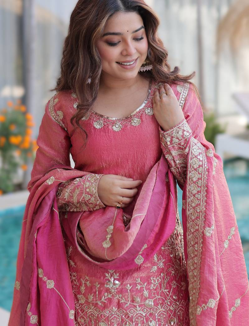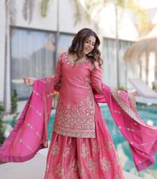 Pink designer ready-made top-sharara-dupatta stitched