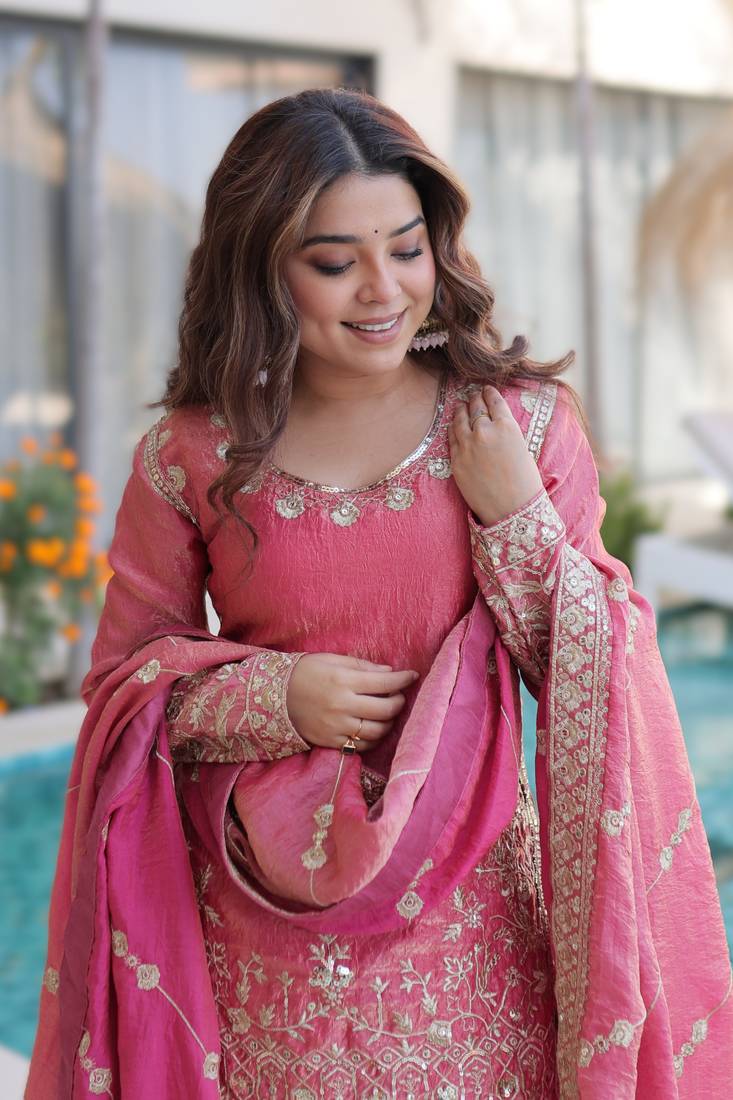| • | Dupatta | : | Color- Pink / Fabric- Silk Blend |