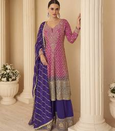 Pink ready-to-wear heavy georgette embroidered salwar kameez with palazzo & dupatta elegant party wear stitched