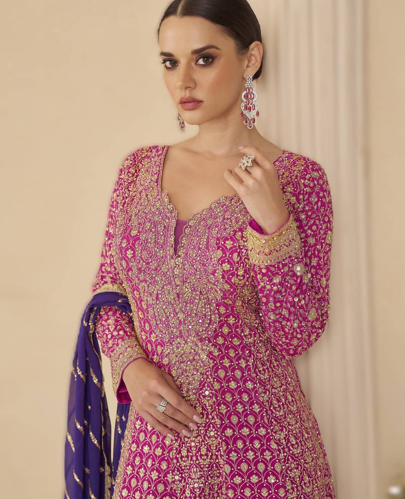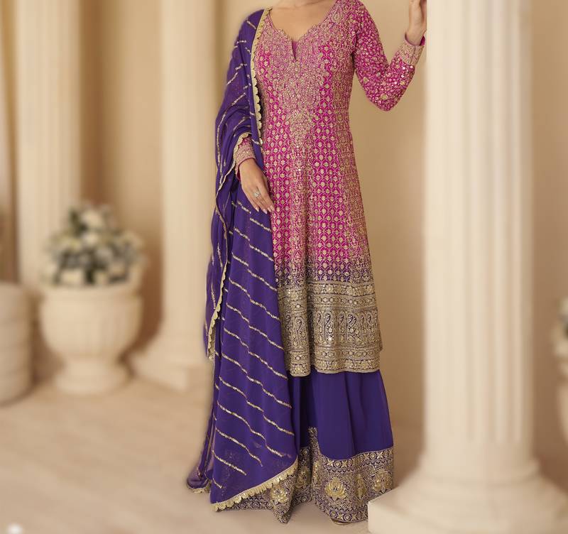 | Product Name | Pink Ready To Wear Heavy Georgette Embroidered Salwar Kameez With Palazzo & Dupatta Elegant Party Wear | |