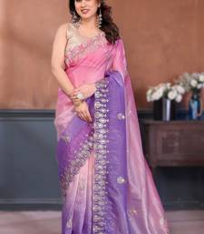 Lavender rich gold crush silk embroidered saree with multi-tone color