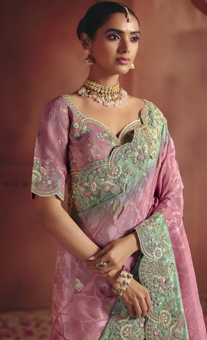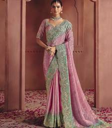 Pink rich pure smooth zari silk saree with heavy embroidery and sequins