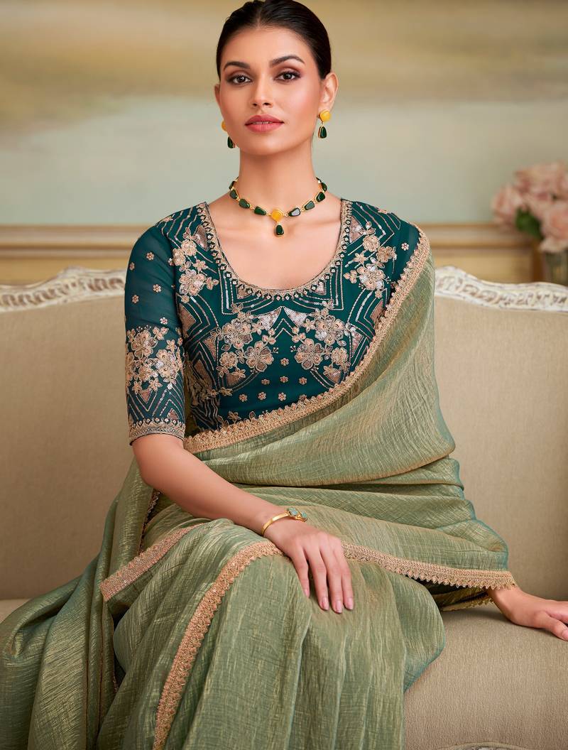 | Product Name | Pista Green Gold Georgette Saree With Georgette Work Blouse | |