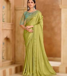 | Embellish | Fresh Pistachio Green Satin Chiffon Saree With A Graceful Drape. Paired With An Unstitched Banglori Work Blouse, | |