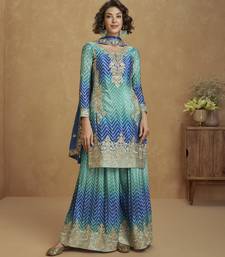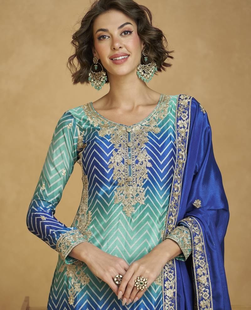 Premium chinon silk embroidered kurta palazzo set with chinon dupatta stitched