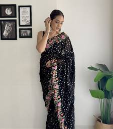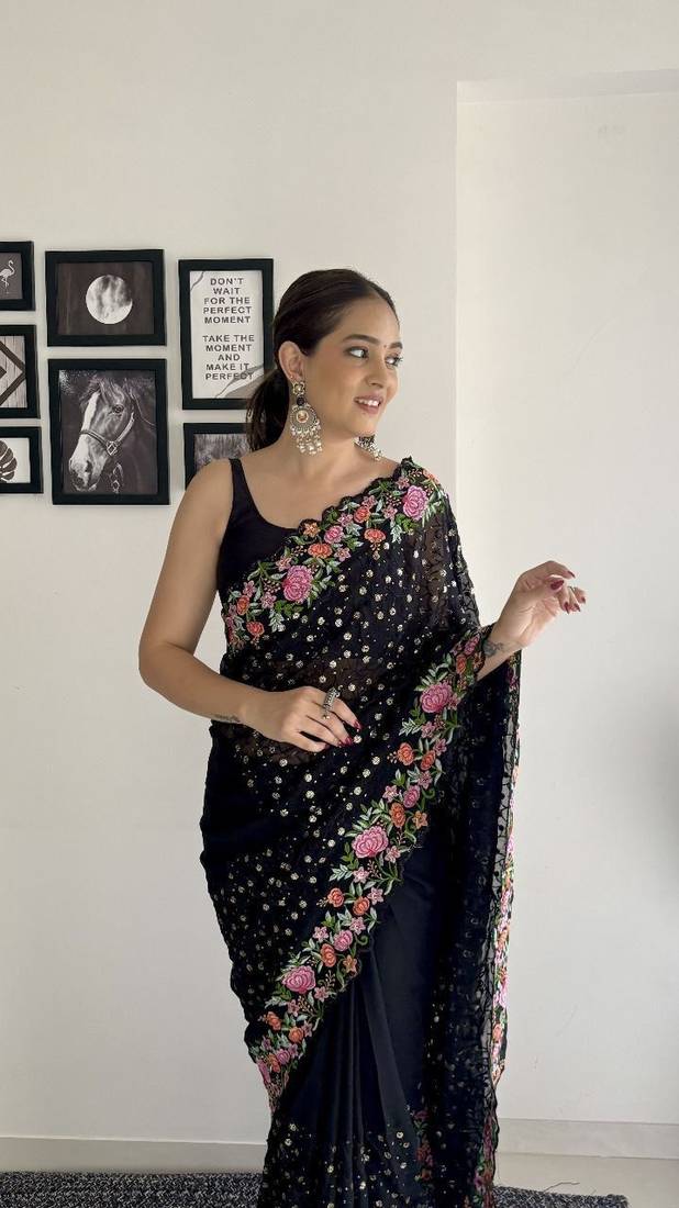 Premium georgette saree with all-over sequins & thread embroidery ready stock