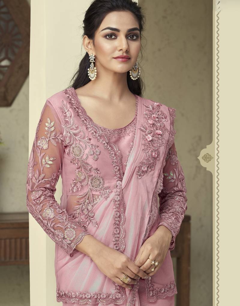 | • | Saree | : | Color- Pink / Fabric- Shimmer |