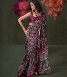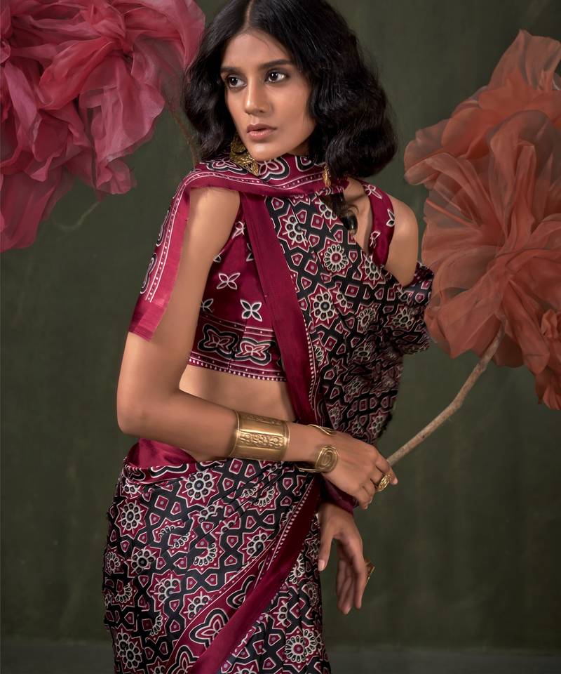 Printed ajrakh satin crepe saree – traditional art with a modern touch