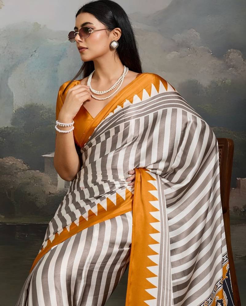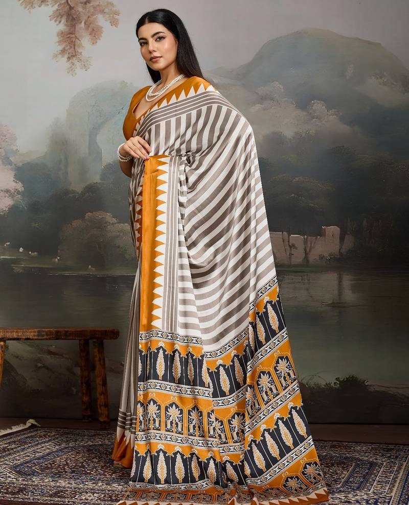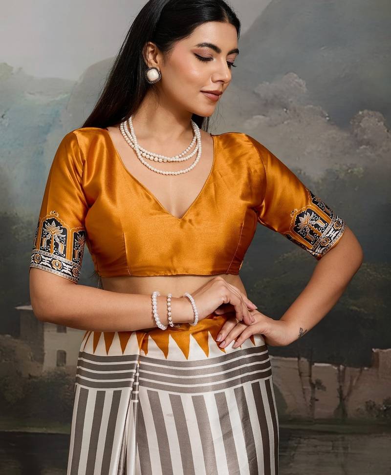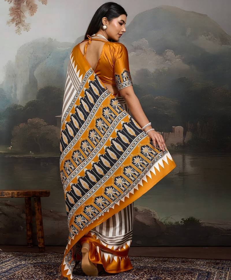 Printed ajrakh satin crepe saree – traditional art with a modern touch
