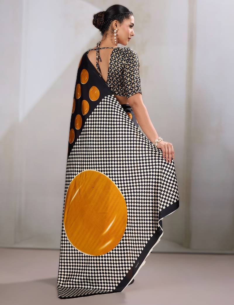 Printed ajrakh satin crepe saree – traditional art with a modern touch