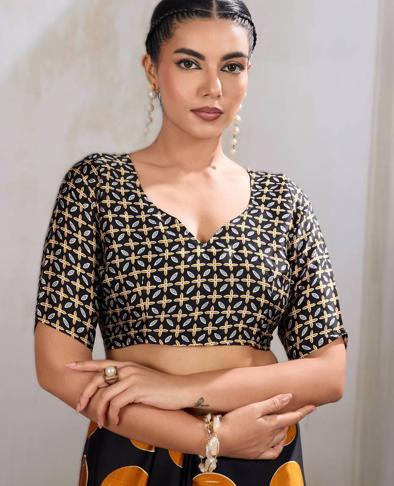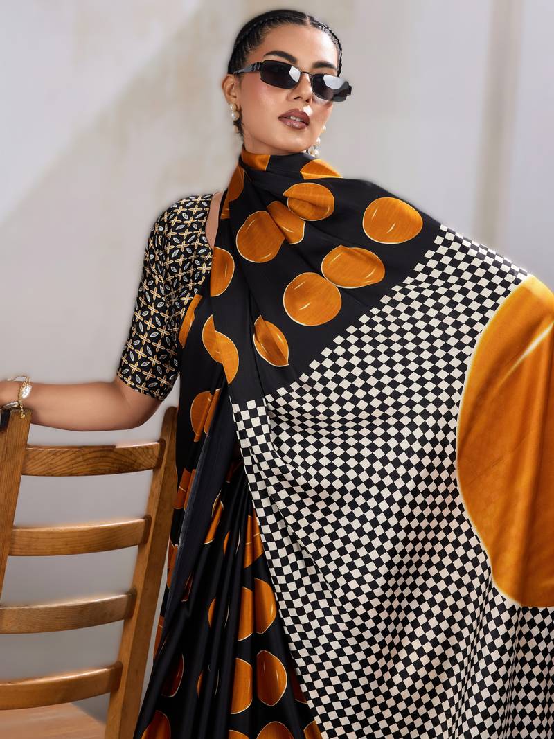 | Product Name | Printed Ajrakh Satin Crepe Saree – Traditional Art With A Modern Touch | |