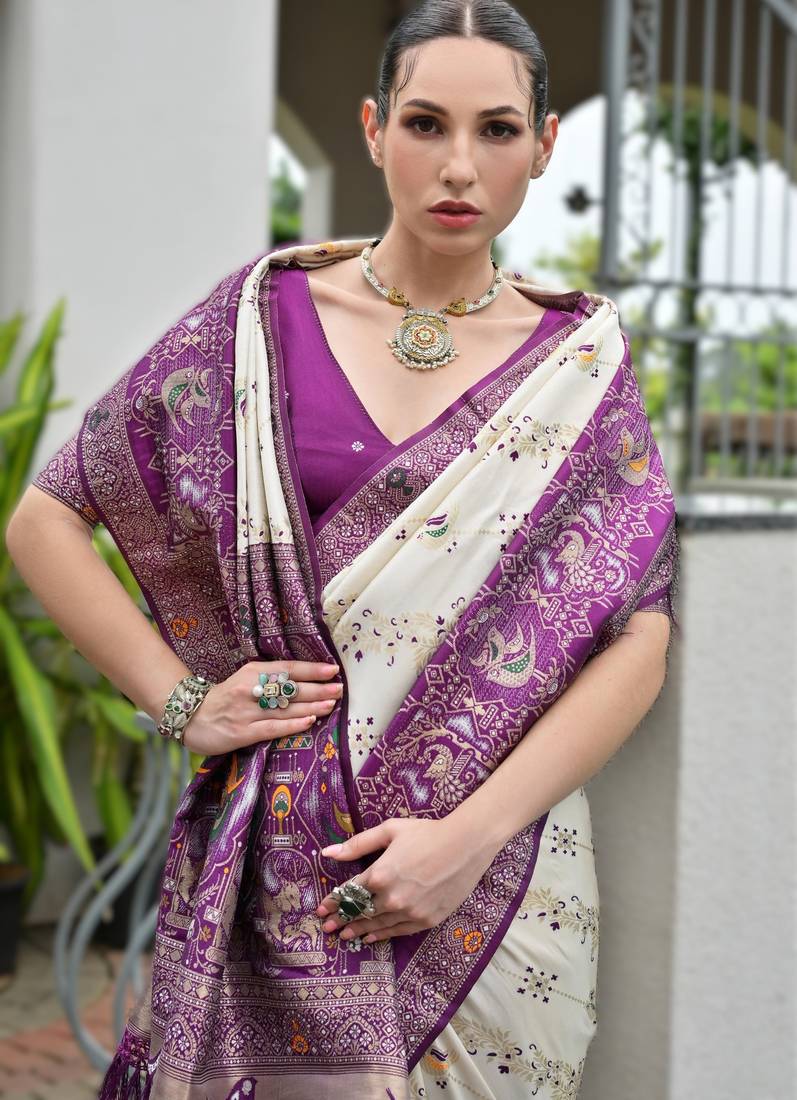 | Product Name | Purple Banarasi Silk Saree In Ajrakh And Patola Weaving With Zari Pallu | |