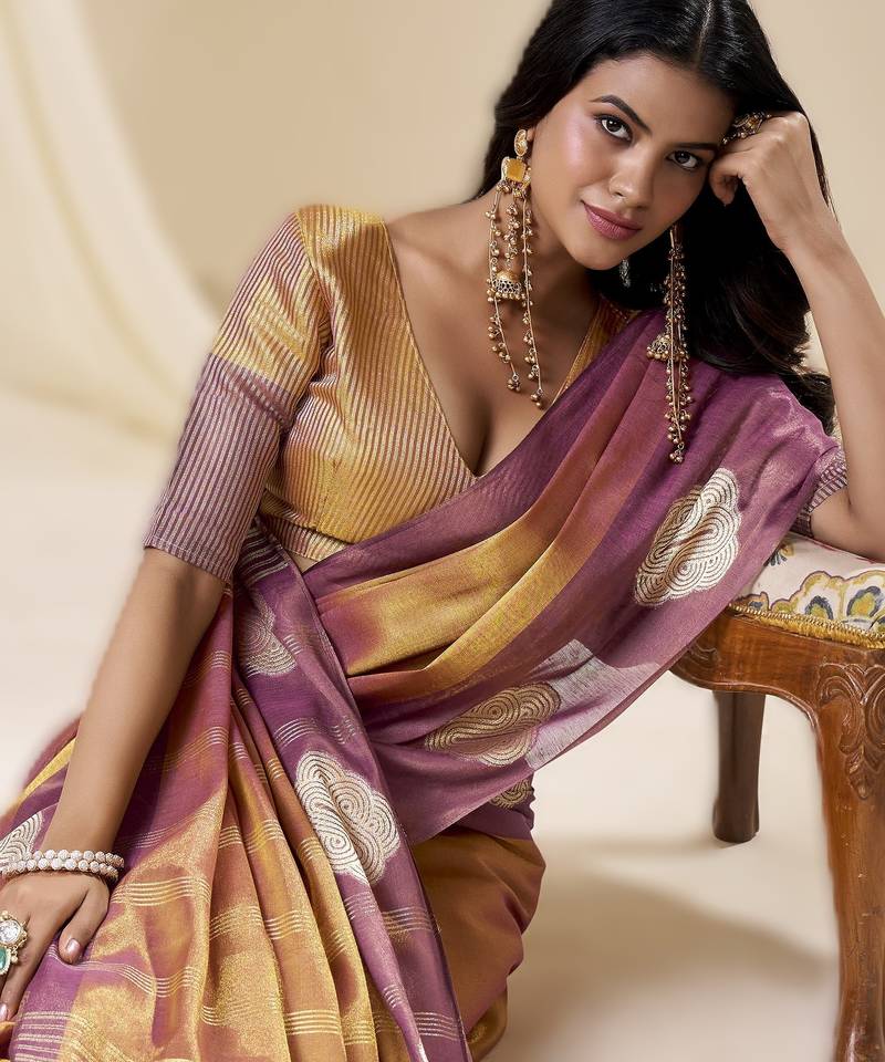 Purple handloom tissue soft silk saree – elegant & lightweight traditional wear