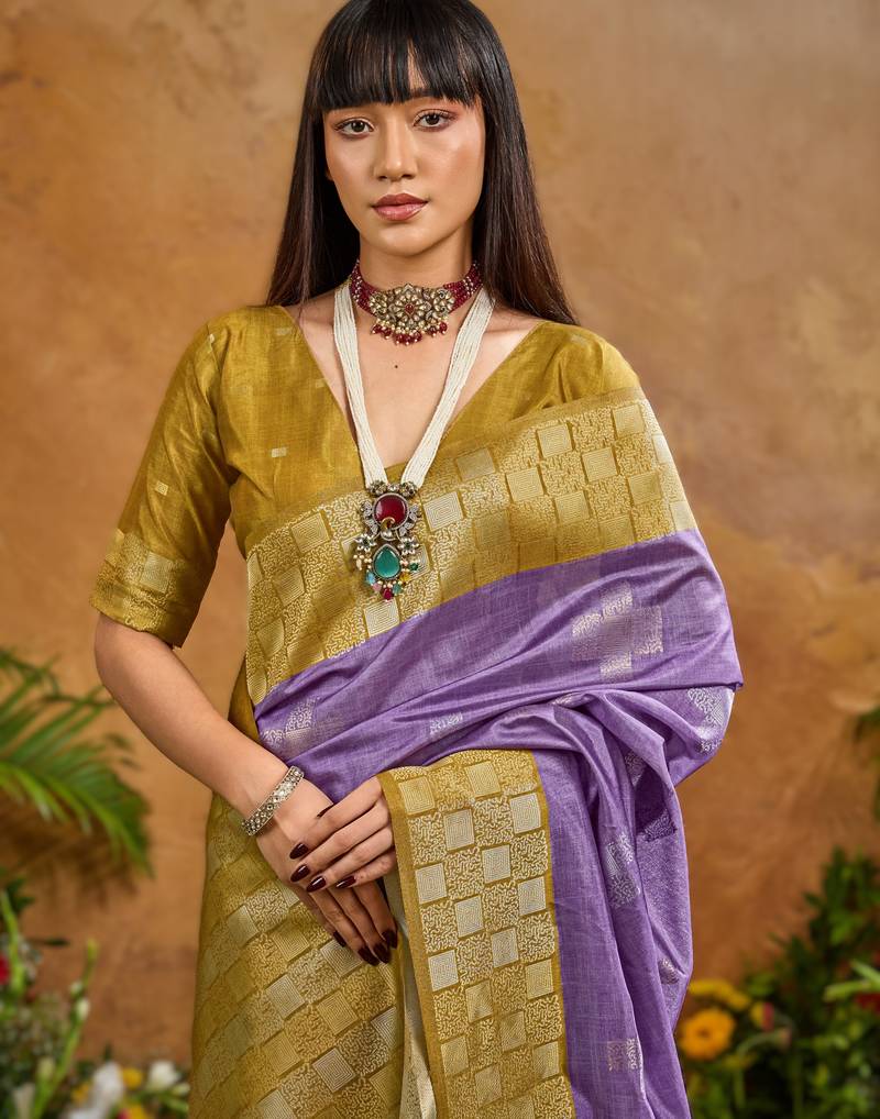 | Product Name | Purple Handloom Weaving Paper Silk Saree With Matching Paper Silk Blouse | |