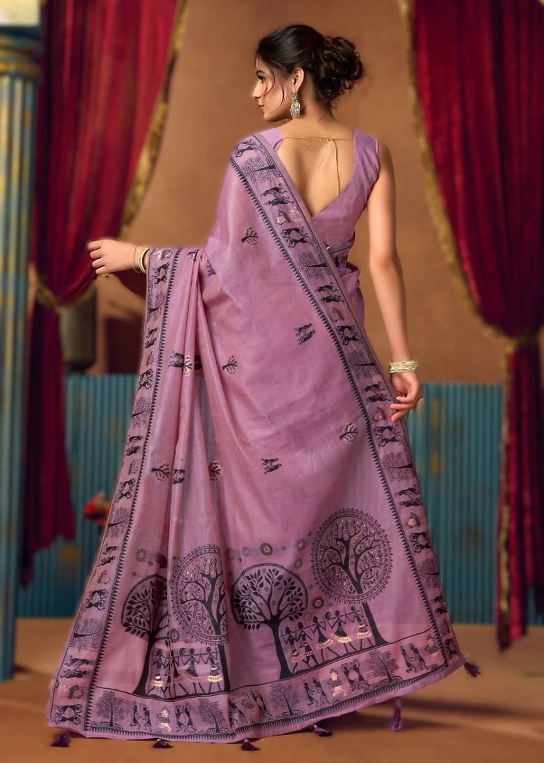 | Product Name | Purple New Catalogue Launch By Gobuni – Modal Warli Work Saree With Pumpum | |
