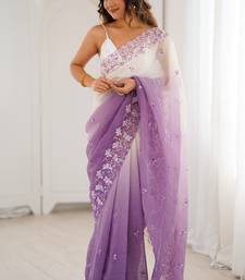 Purple women's elegant crunchy saree with sequins embroidery work & satin silk blouse