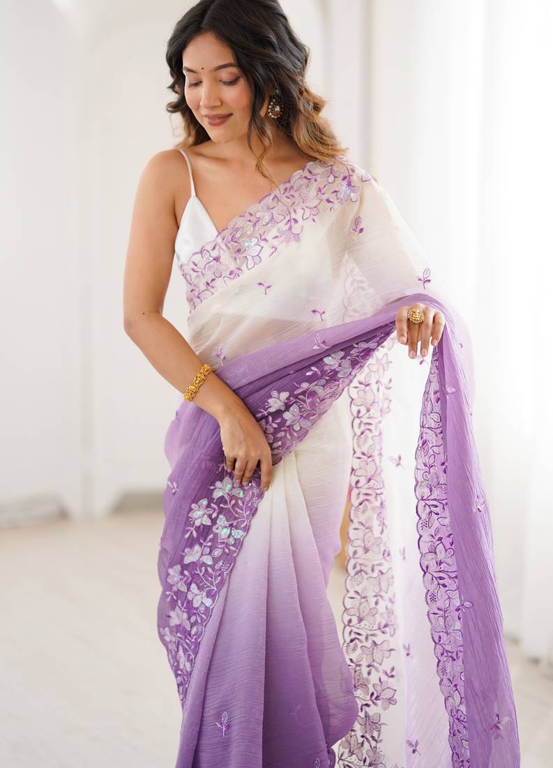 | Product Name | Purple Women's Elegant Crunchy Saree With Sequins Embroidery Work & Satin Silk Blouse | |