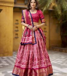 Rani-pink ready-made dola silk lehenga choli with batik print & zari weaving