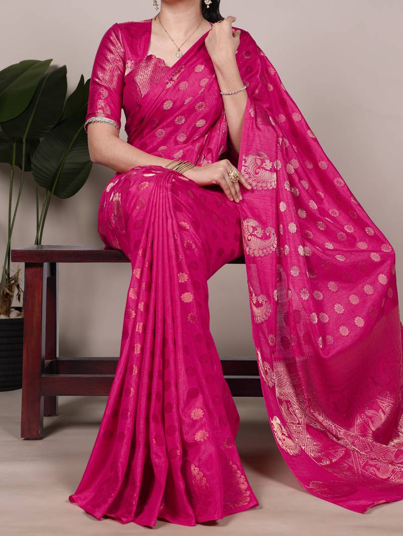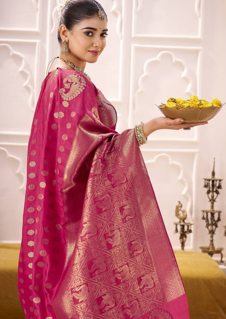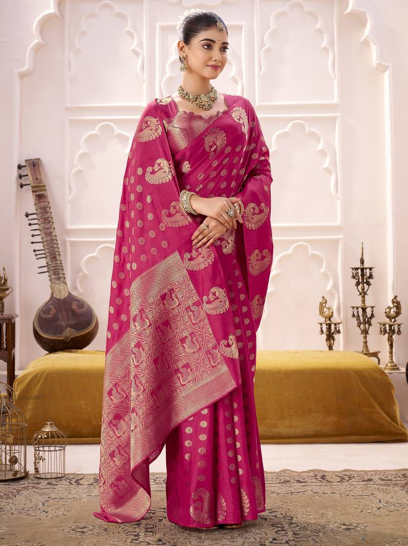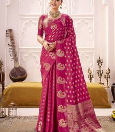 Rani pink roop silk blend zari weaving saree with designer blouse