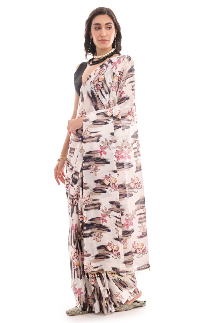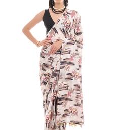 art silk saree with printed design & pallu lace border, paired with banglori unstitched blouse