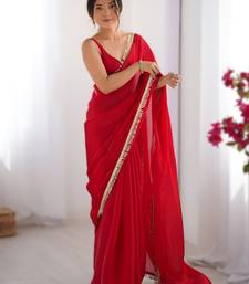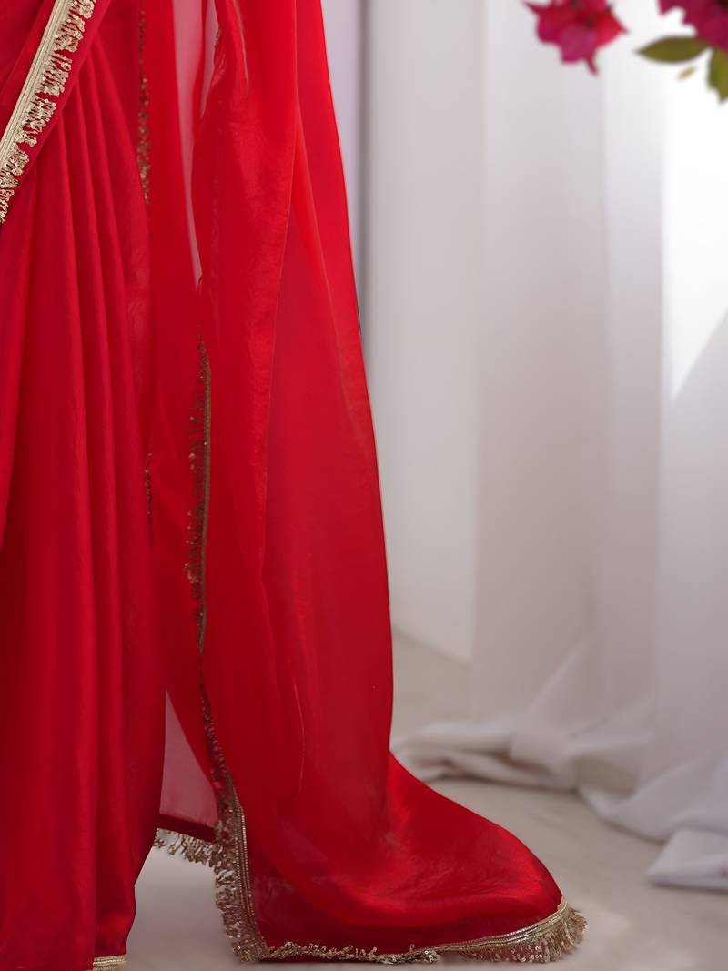 Red soft space silk saree with sequin zalar lace border & matching blouse