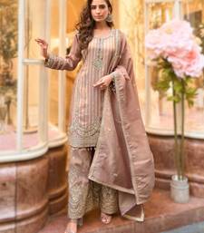 Simar viscose jacquard embroidered palazzo kurti set with silk dupatta stitched