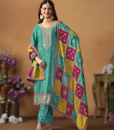 Sky-blue chinon silk top with santoon bottom, inner & chinon silk dupatta unstitched