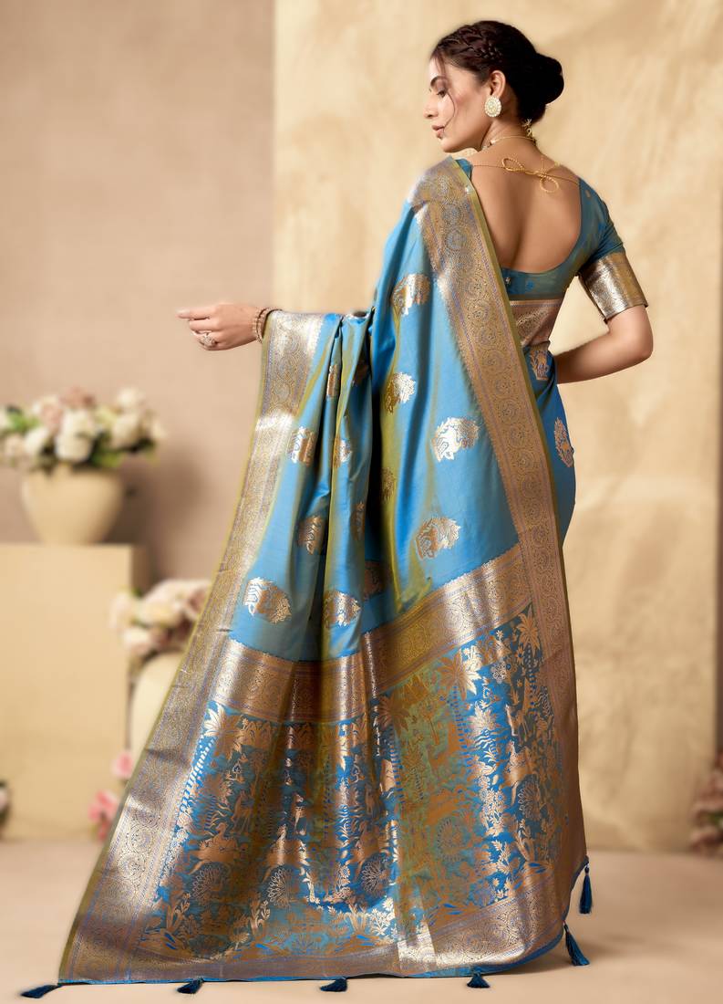 Sky blue rich pallu silk saree with zhallar border a masterpiece of tradition & elegance