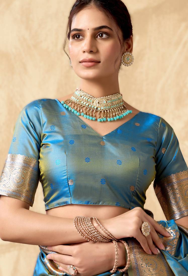 Blouse : Color- Sky Blue / Fabric- Art Silk