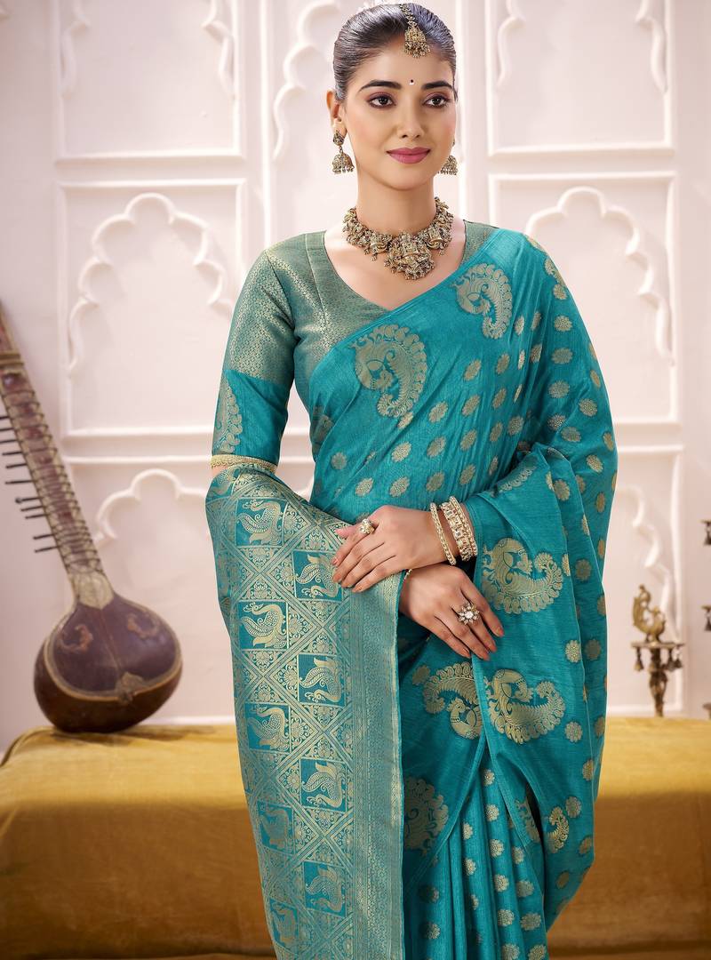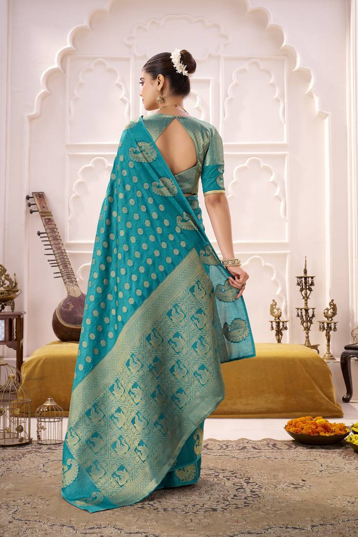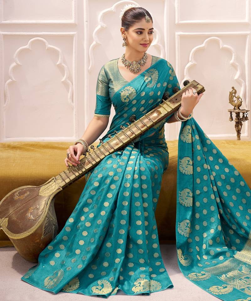 | Product Name | Sky Blue Roop Silk Blend Zari Weaving Saree With Lace Touch Blouse | |
