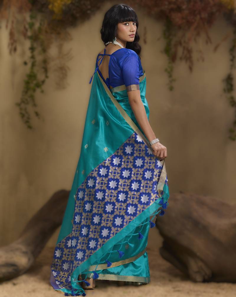 Saree : Color- Sky Blue / Fabric- Tussar Silk