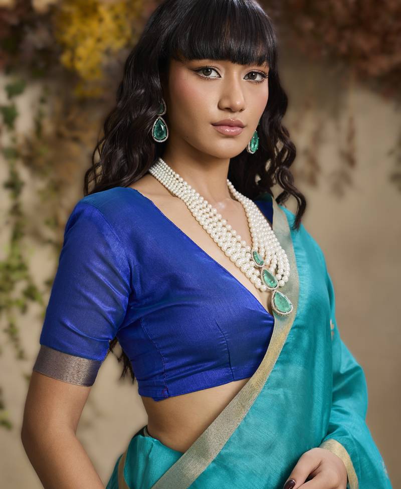 Blouse : Color- Royal Blue / Fabric- Tussar Silk