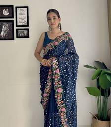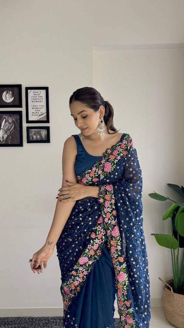 Soft georgette sequins saree with multi-colour embroidery designer party & festive wear