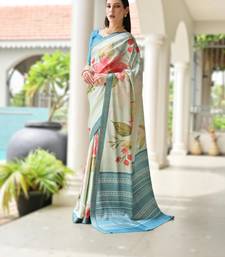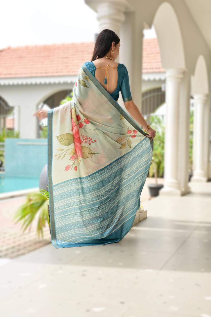 | Product Name | Sky Blue Soft Pure Satin Silk Saree With Hand Painted Floral Design & Zari Border | |